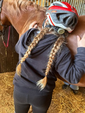 „Für die meisten unserer Jugendlichen war es die erste Kontakterfahrung mit Pferden und somit eine Herausforderung sich auf Berührung einzulassen und auf dem Pferd zu reiten. Das Reiten selbst und der Umgang mit Pferden fördert Vertrauen, Selbstbewusstsein und Selbstwirksamkeit. Es stärkt die Motorik, Gleichgewicht und regt beide Gehirnhälften an. Durch Nähe und Berührung mit dem Pferd entstehen Geborgenheit und Trost. Ängste können behutsam überwunden und Durchsetzungsvermögen erprobt werden. Das Versorgen des Pferdes vermittelt Sicherheit, Verantwortung und soziale Kompetenzen. Diese Stimmung und den Einfluss der Pferde auf die Jugendlichen spürten wir heute deutlich. Wir erlebten unsere Jugendlichen im Umgang mit den Pferden als sehr verantwortungsbewusst, vorsichtig und interessiert. Die Jugendlichen zeigten sich selbstbewusst, konnten teilweise ihre Ängste ablegen und nahmen Erfolgserlebnisse mit nach Hause. Selbst Jugendliche, die wir im Alltag eher „auffälliger“ oder herausfordernder erleben, zeigten sich kooperativ und ausgeglichener. Die Jugendlichen selbst meldeten zurück, dass es eine schöne Erfahrung war und sie stolz sind, dass sie sich getraut haben. Wir erlebten heute eine angenehme und wertschätzende Gruppenstimmung.“